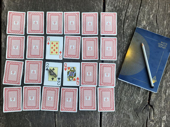 - Розмісти карти у формі сітки на столі — наприклад, 4×6.